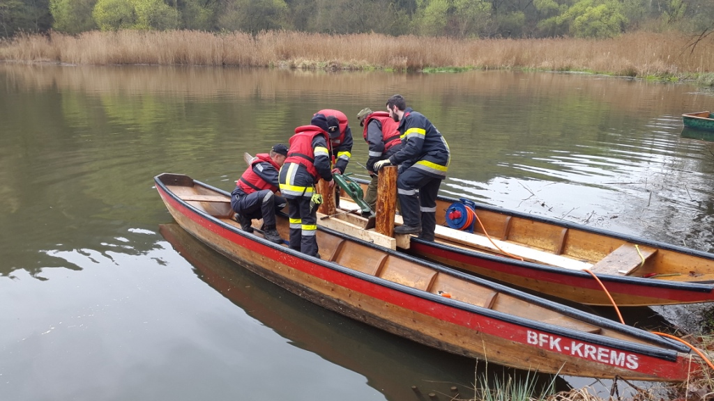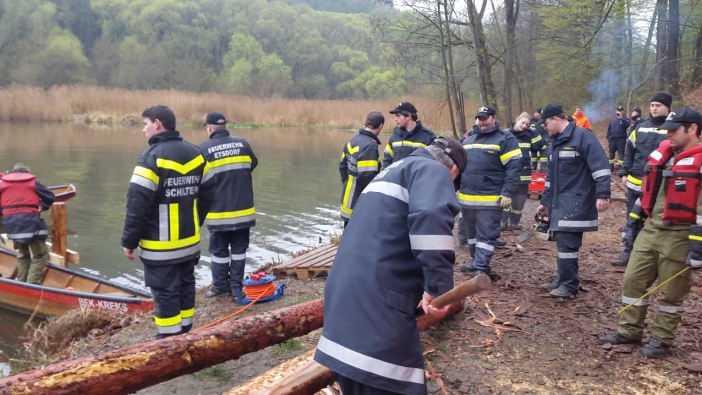 Am Freitagnachmittag begannen die Mannschaften der Feuerwehren Lengenfeld, Mittelberg, Reith und Schiltern mit dem Einschlagen der Piloten im oberen, eher schlammigeren Teil des Stausees. Am Samstag fanden sich früh morgens die Feuerwehren Elsarn, Etsdorf, Gobelsburg, Langenlois, Hadersdorf, Lengenfeld, Stiefern, Zöbing und Schiltern ein um den Steg fertigzustellen. Hierzu wurden die Piloten verstrebt und mit Staffeln aufgebaut, als Trittfläche dienen Paletten. Die perfekte Zusammenarbeit zwischen den Kameraden an Land und in den Zillen ermöglichten einen reibungslosen Aufbau. Am späten Nachmittag konnte der Steg eingeweiht werden.