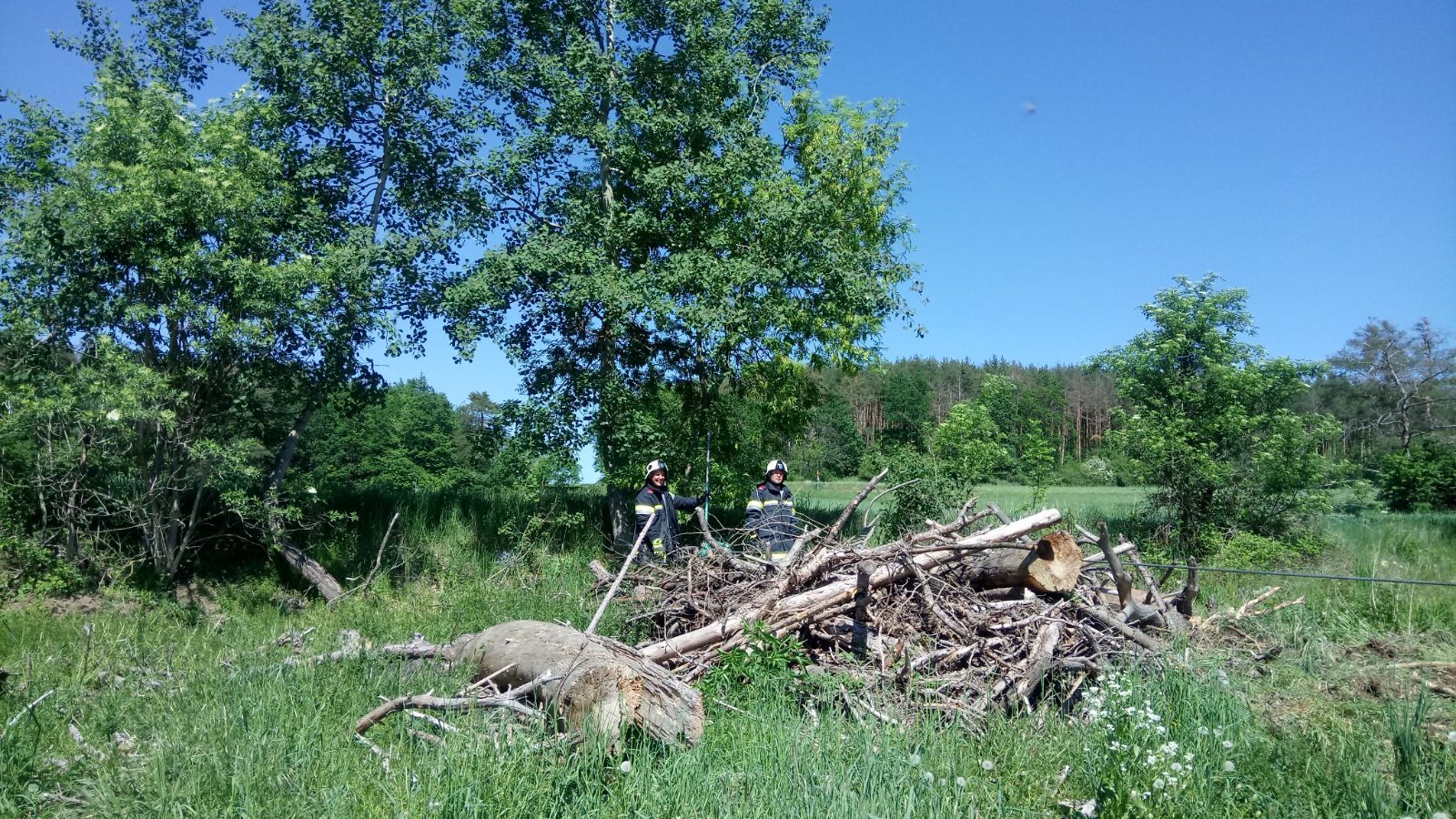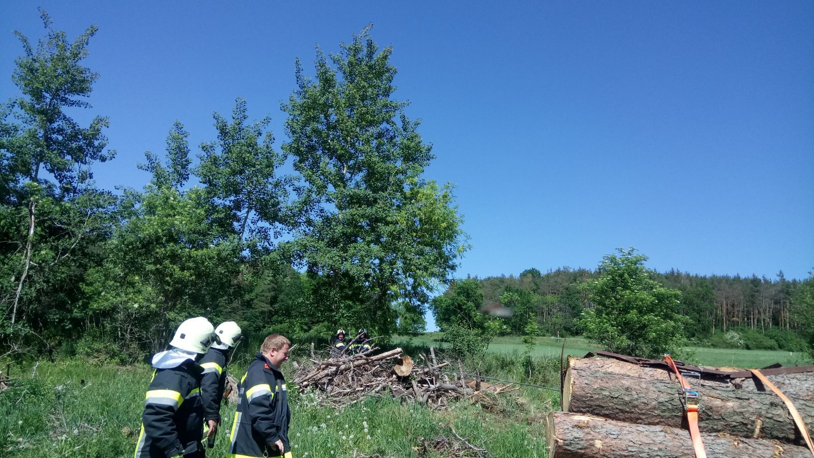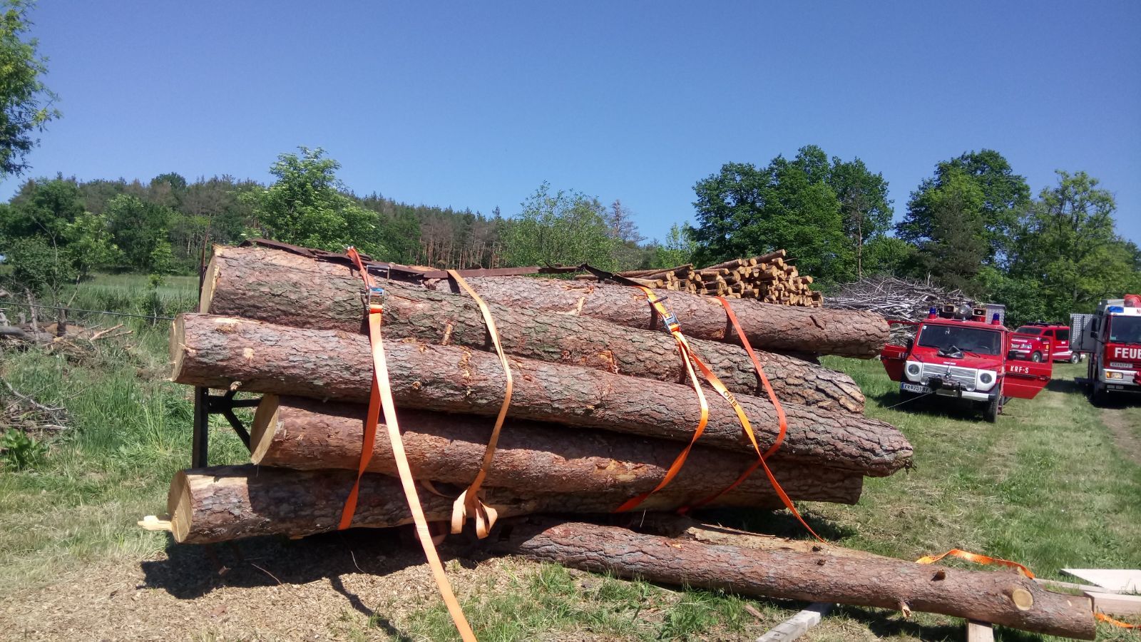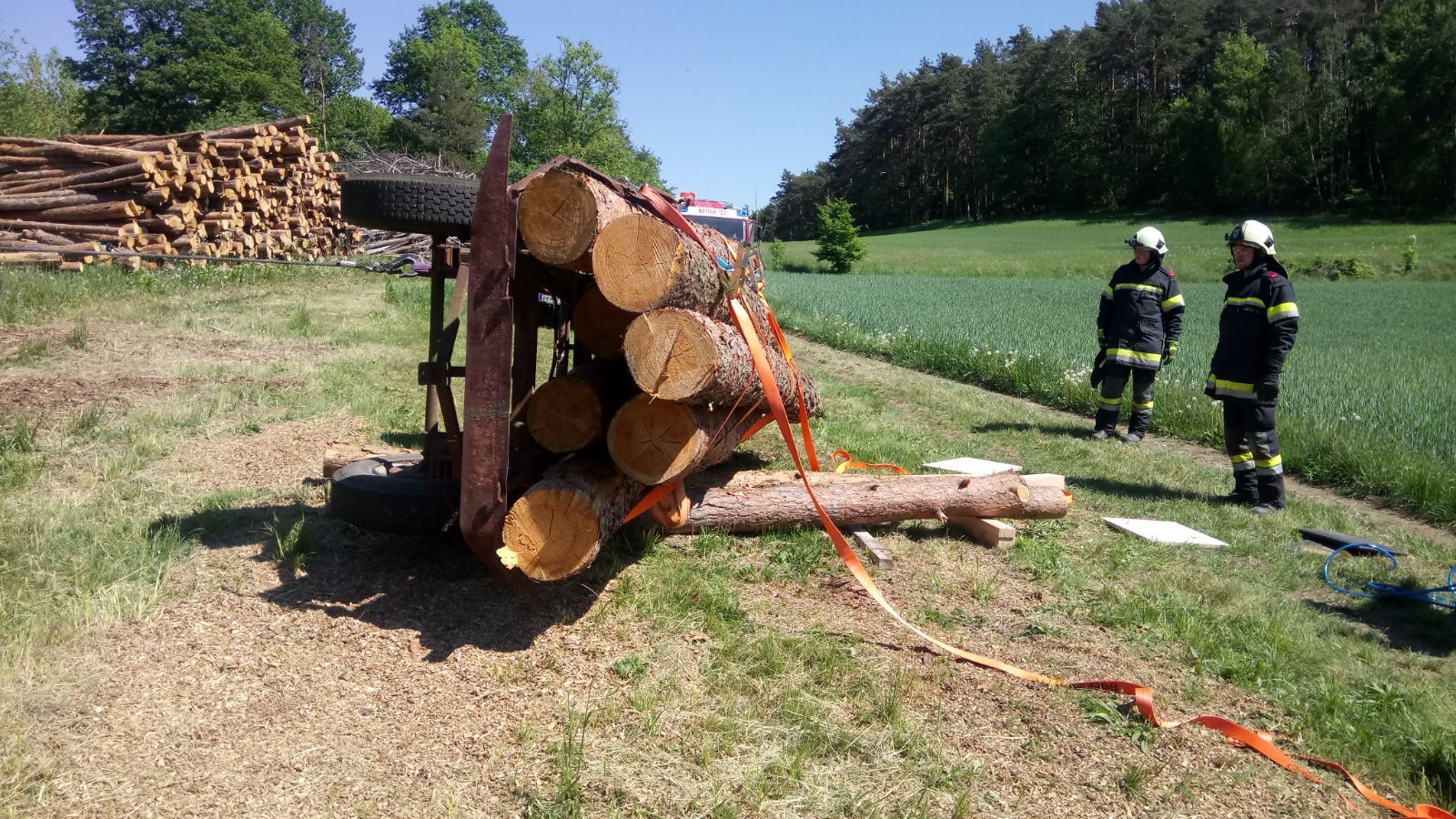 Es wurde die Ladung und der Anhänger mittels Greifzug gesichert, der Baumstamm mit Hebekissen angehoben und die Person gerettet. Danach wurde der Anhänger aufgestellt und aus dem Gefahrenbereich gebracht.