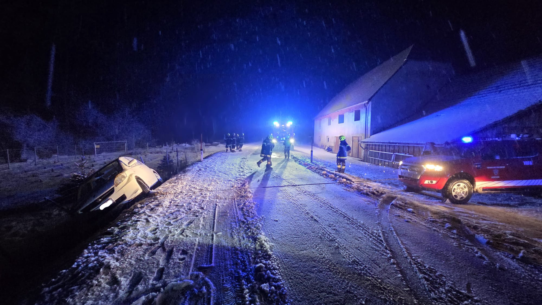 Nach dem Eintreffen an der Einsatzstelle wurde das Fahrzeug abgesichert und geborgen. Im Anschluss konnte die Straße wieder freigegeben werden.