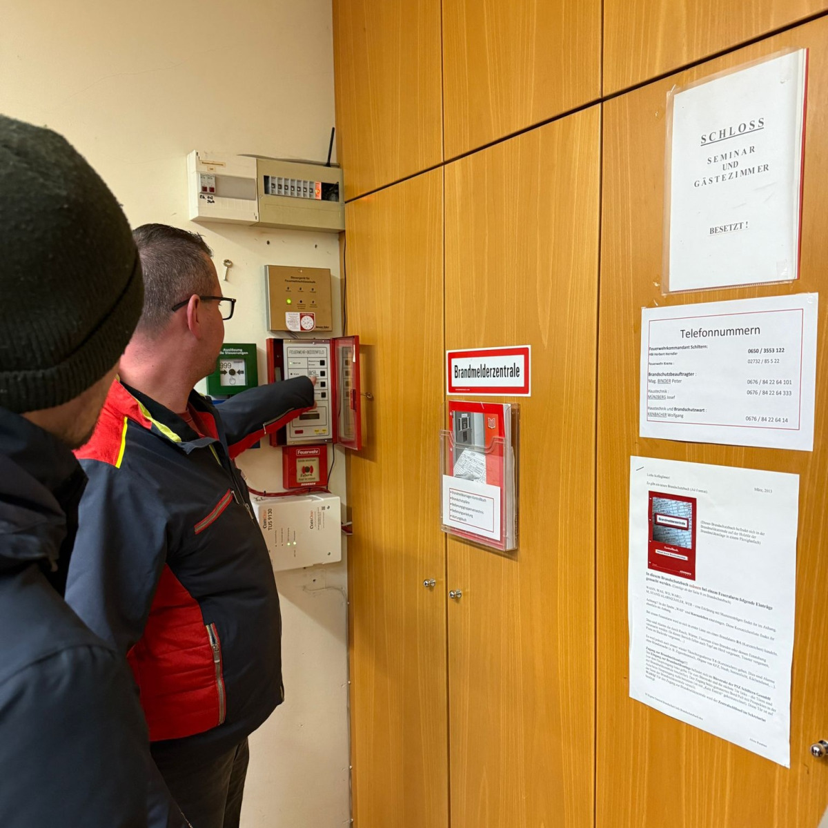 Gemeinsam mit unseren Einsatzleitern fand außerdem eine Besichtigung der Brandmeldeanlage im Schloss Schiltern statt. Ziel war es, sich mit den örtlichen Gegebenheiten und den technischen Einrichtungen vertraut zu machen, um im Ernstfall bestens vorbereitet zu sein.