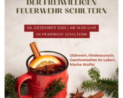 Auch heuer lädt die Freiwillige Feuerwehr Schiltern wieder zum gemütlichen Glühweinstand in den Pfarrhof ein. In der warmen, stimmungsvoll dekorierten Atmosphäre könnt ihr euch auf herzhafte Speisen, wärmende Getränke, süße Waffeln und ein geselliges Miteinander freuen. Ein entspannter Adventabend zum Genießen, Plaudern und Zusammenkommen – wir freuen uns auf euch!